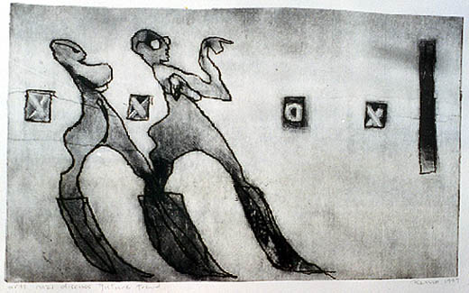 Roger Morris. Remo. rem. rm. r. Born 1954, central otago. Painter rock carver printmaker. Has painted full time since 1980. Elam first term 1981. Taranaki since 1983. Has shown extensively throughout NZ in that time to no effect whatsoever.CSA. Suter .etcetera etcetera, last decade, art haus, walrus, texan art schools, mirangi bay,kina . National portrait gallery.lately overseas ., NY[Abram Lubenski Gallery], UK, St. Petersgurg virtual show and participated in Art Polygon gallery show[war in the conciousness of the painter]with woodblock print , 1999 and Moscow late 1999[A3 Gallery].Bangkok. Japan. Usual cv stuff.Mailartist on the mailart international link.Picked up awards from Canadian mailart show [Brampton Ontario]and Tarragona Spain[Museus de Tarragona]. .-.Virtual tartist. stone carving Auckland symposium western springs 1988. (ode to the holocaust) Tool making forge/workshop. Has participated in all stone carving events in Taranaki since 1989. Made iron art at Parihaka. Tarietanga Wellington 1997. Sweetwaters symposium 1999. Is part of the kupenga 2000 Lives and works from top of the oeo road, south Taranaki , with partner Marianne Muggeridge [ Painter and screen printer.]And two daughters. Lucy and Myfanwy . We are both full time artists .